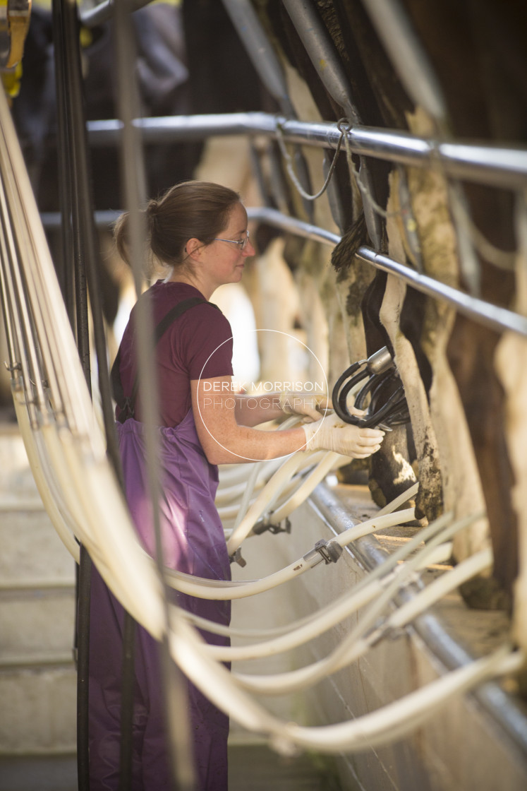 Morning milking at the Wilson dairy farm on the Taieri Plains, Taieri, Dunedin, Otago, New Zealand.